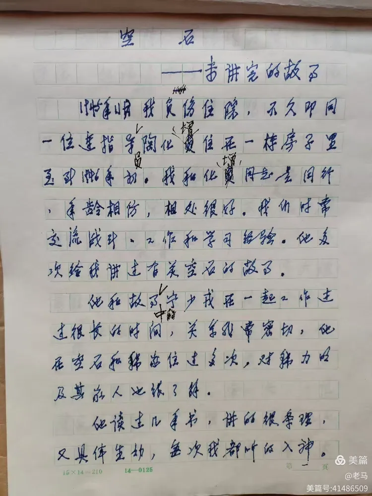 出院以后,我回到连队,连部文书要看这个本子上《空石》的故事,这个写满故事的本子,就一直由他负责保存。